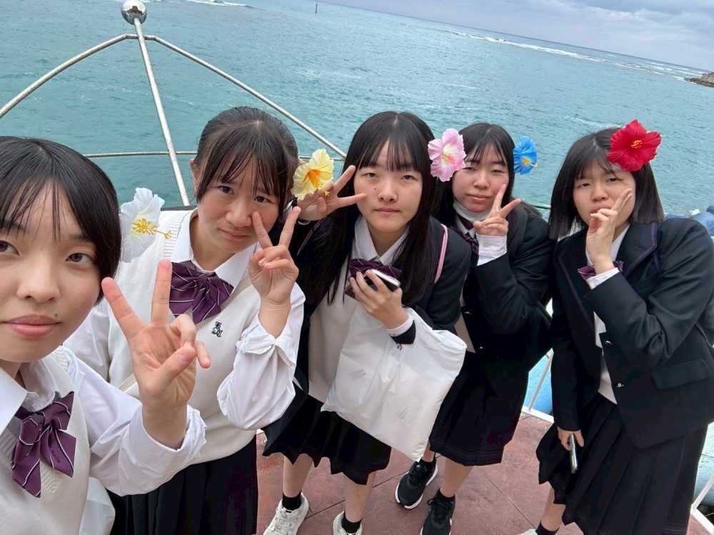 沖縄の美しい海を眺めながら、その景色を楽しむ生徒たちの姿が印象的でした🪼🩵