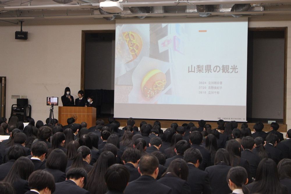 ホーム20262月課題研究発表会 2026年2月18日カテゴリー: 行事・活動 その他の行事・活動 ホームページ作成委員会 課題研究発表会 2月10日(火)に2年生を対象に課題研究発表会が行われました‼ 3年生がこれまで取り組んできた学習活動のまとめとして 研究成果を発表してくれました✨ 分かりやすいパワーポイントを使いながら、落ち着いた話し方で丁寧に説明してくださり、研究内容を理解しながら聞くことが出来ました。また、山梨の課題やそれに対する解決方法をたくさん学ぶことができました😊 2年生は来年度から課題研究が始まります。今回の発表を参考に しながら、私たちもより良い研究と発表ができるように 頑張りましょう💪