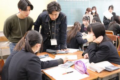 授業では、生徒がグループに分かれ、それぞれのグループに専門学生が入り、