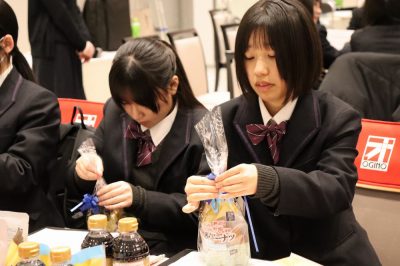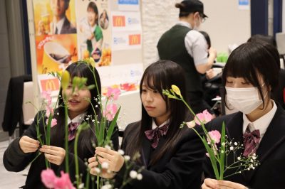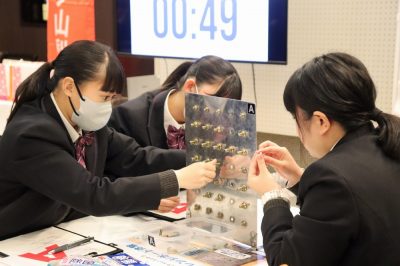 ホーム20263月【1年生】KANAUフェス 2026年3月16日カテゴリー: 学校からのお知らせ 【1年生】KANAUフェス 令和8年3月16日月曜日 自衛隊ブースで、制服の試着体験の様子 山梨日日新聞社・KANAU事務局が主催する、職業体験イベント「KANAUフェス」が、ベルクラシック甲府で開催され、本校の1年生240名が、県内の企業や仕事の内容について学んだ。 当日は、企業ごとに行われる「職業別デモ型体験授業」が実施され、各分野の仕事について企業の担当者から実演や説明を交えながら紹介していただいた。生徒たちは実際の業務の様子を間近で見たり、企業の担当者から直接話を聞いたりすることで、仕事の内容ややりがい、地域で働く魅力について理解を深めた。 参加した生徒からは「普段は知ることのない仕事の内容を知ることができた」「山梨にもさまざまな企業があることが分かった」といった声が聞かれた。体験型の授業形式により、進路や将来の職業について考える貴重な機会となった。 今回の取り組みは、地域の企業を知り、地元で働くことへの関心を高めることを目的としているものであり、生徒たちにとって、将来の進路選択を考えるきっかけとなる有意義な学びの場となった。 iPadを使用した、販売体験 アイスフレーバーを使用したクイズ AIを利用したプログラミンング作業 生け花体験の様子 ラッピング体験の様子 指紋の採取の体験の様子 ボルトを使った、ゲームの様子 起業紹介の様子
