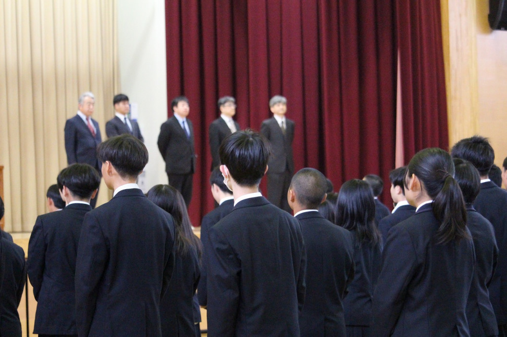 ホーム行事・活動納め式Page 3 納め式 2020年12月17日 納め式・生徒総会 本日は、納め式と生徒総会が行われました。 本来は、体育館で開かれる予定でしたが、 新型コロナウイルスの影響で放送室で開かれました。 多くの賞状や盾が納められました😊 生徒代表による宣誓が行われました。 例年... 2020年8月18日 2学期 始業式・納め式 本日は、始業式と納め式が行われました。 感染症と熱中症対策のため、 教室にて放送で行われました。 生徒たちも集中して式に臨んでました。 始業式の後、納め式が行われました。 夏休みが終わり約2週間振りの登校となり... 2019年6月26日 納め式・壮行会 本日、納め式・壮行会が行われました。多くの部が素晴らしい結果を残すことができ、全国大会に出場します。全校生徒からエールが送られ、選手たちの士気を高めることができました。選手の皆さんは、良い結果が残せるよう頑張ってください。 2019年5月23日 納め式・壮行会 本日、納め式・壮行会が行われました。 納め式では、様々な部が優秀な成績を納めることができました。 壮行会では、選手たちに全校生徒からエールが送られました。 選手の皆さんは良い成績が残せるようベストを尽くして頑張ってください。 2019年4月10日 対面式・ソングリーダー部成績報告会 本日、対面式とソングリーダー部成績報告会が行われました。 対面式では、新入生達を歓迎し、一年生代表が生徒会長と握手を交わしました。 ソングリーダー部成績報告会では、先日行われたアメリカ大会で二部門優勝、総合三位という成績を納めました。 2019年3月20日 納め式・壮行会 納め式では、今回もたくさんの個人と団体が収め式を行うことができました。 壮行会では、全国大会や東日本大会や世界大会に出場する部活を、全校生徒で応援しました。 そして、壮行会の後にアメリカ大会に出場するソングリーダー部が、全校生徒に演技を披露してくれました。 世界レベルの息の揃った演技にとても感動しました。 選手の皆さん、練... 2019年2月28日 納め式・各種褒賞授与式及び記念品贈呈式 本日、褒賞授与式及び記念品贈呈式が行われました。 今年度は、全商協会主催検定試験全種目1級合格を4名の生徒が達成し、大変素晴らしい成績を残しました。 また、全商検定3種目以上合格を144名の生徒が達成し、本日表彰が行われました。 2018年12月19日 納め式・壮行会・生徒総会 本日納め式・壮行会・生徒総会が行われました。 多くの部が素晴らしい結果を残すことができ、全国大会に出場します。選手の皆さん練習の成果が発揮できるよう頑張ってください。 生徒総会では、活発な意見が出され、有意義な時間となりました。今日出た意見をもとにより良い学校にしていきましょう。 Page 3 of 3«123