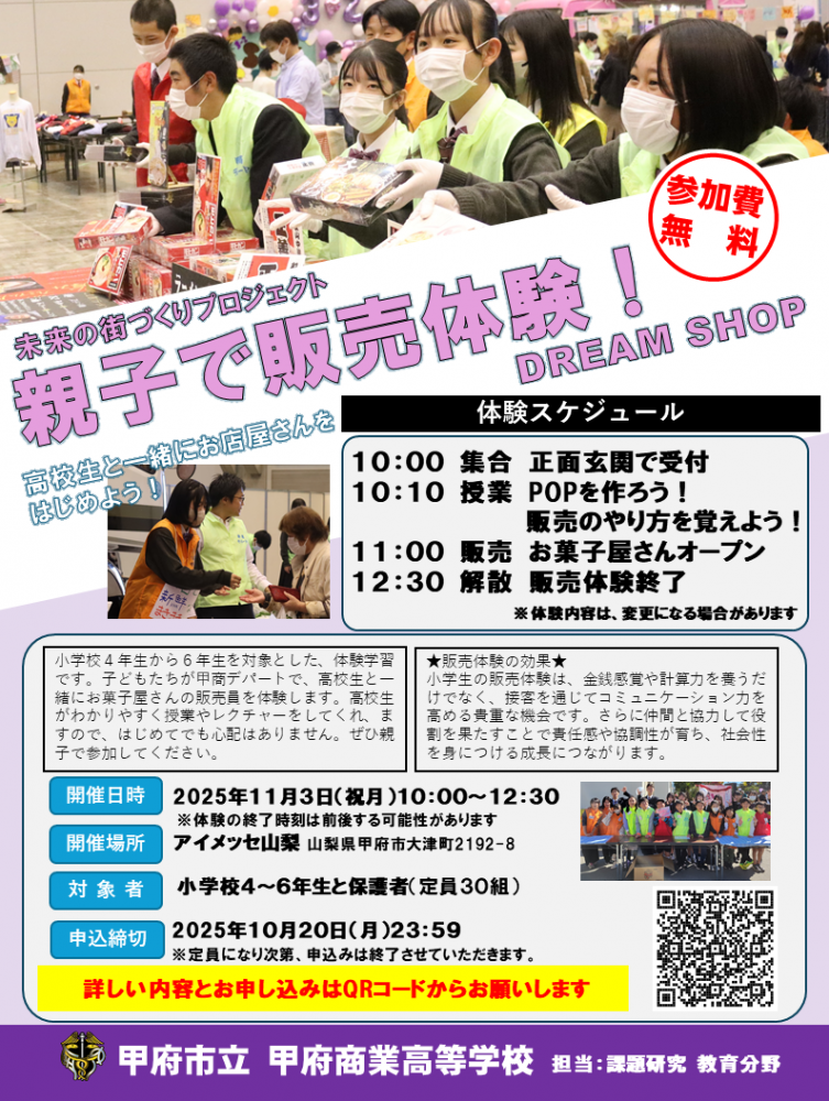 甲商デパートで販売体験!! 今年の甲商デパートでは、小学校4年生から 6年生を対象に販売体験を行います!! ぜひ、この機会に甲商デパートを体験して みませんか?? 詳しい情報と申 […]